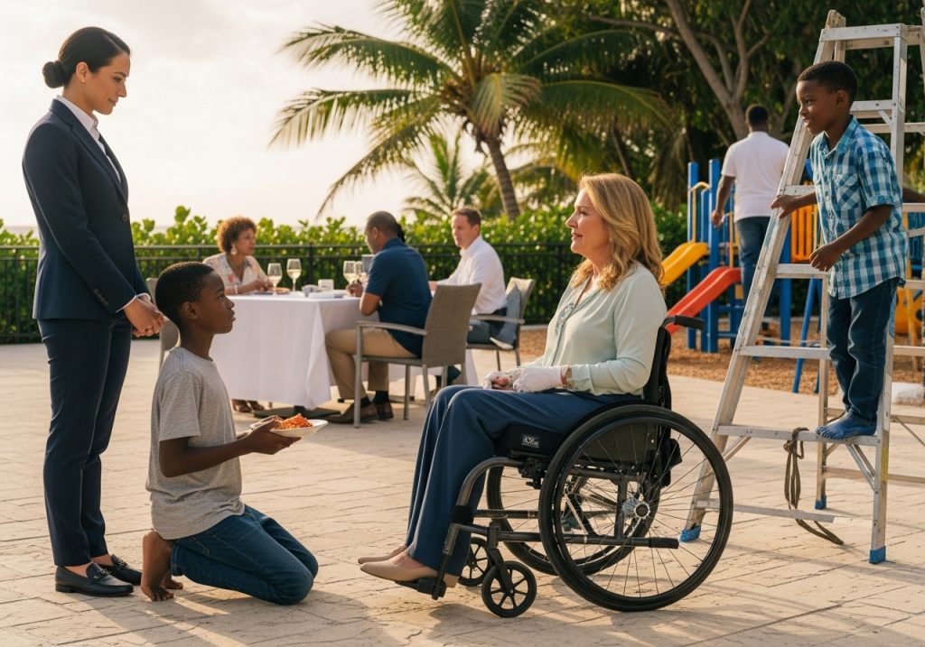 Nai-yuko ang waiter. Sumisigaw ang assistant, “Alis! Alis ka diyan!” Ngunit itinaas ni Victoria ang kamay. May kakaibang katiyakan sa boses ng bata—hindi ito pagmamakaawa lang.